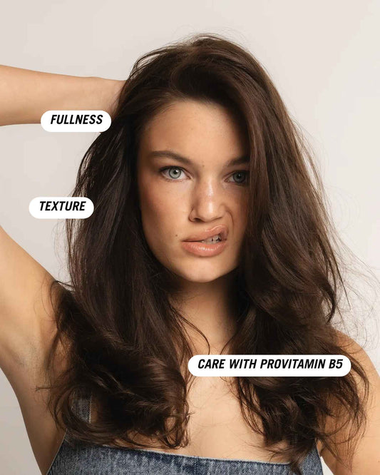 Påfør i fuktig hårbunn og føn for å bygge volum. Du kan også bruke den i hele håret for bedre hold på stylingen og varmebeskyttelse.